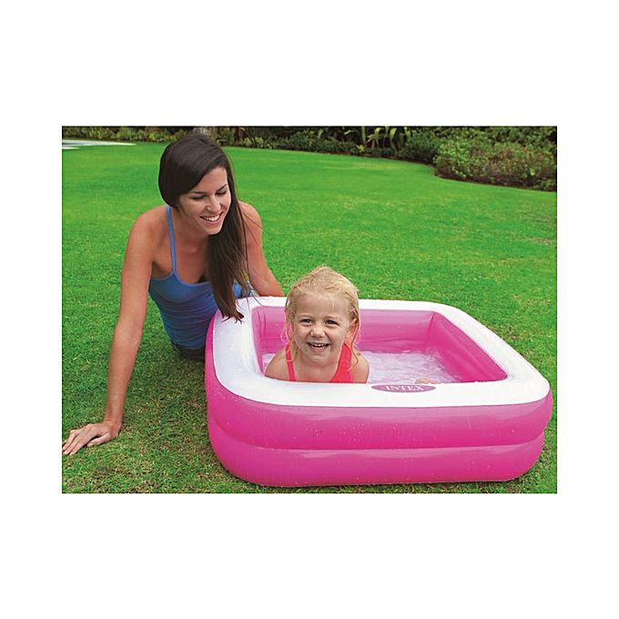 These Play Box Pools are made of 10 gauge vinyl and have a soft inflatable floor and come in neon pink or green